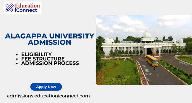 Alagappa University Admission 2026-27: Alagappa University offers a wide range of UG and PG courses such as BA, BSc, BCom, MA, MSc, and MBA. Eligibility criteria include passing 10+2 for UG programs and a UG degree for PG courses with at least 50% marks from a recognized institution. The application fee is approximately INR 500-1000. The Alagappa University Admission is based on entrance exams and merit. Admissions for 2026-27 are open, and students can apply till the closing date of 05th February 2026*.