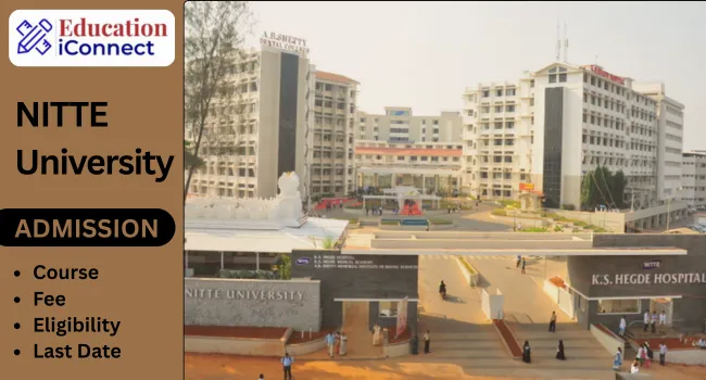 NITTE University Admission 2026-27: NITTE University offers a variety of UG and PG courses such as BTech, MBBS, BSc, BDS, MTech, and others. Admission for the 2026-27 session is currently open. Eligibility for UG courses typically requires a 12th class with a minimum of 45%-50%, while PG courses require a relevant undergraduate degree. Admissions are based on entrance exams like NEET, KCET, and GATE. The approximate fee of online registration is INR 1,500. The course duration ranges from 2 to 5 years. Interested students can apply through the official portal for NITTE University Admission.