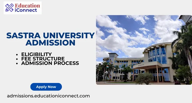 SASTRA University Admission 2026-27: SASTRA University offers UG and PG programs, including BTech, BCom, MBA, MCA, and MTech. Eligibility criteria vary by program, but applicants typically need to score 50% to 60% in their 10+2 or UG degree from a recognized institution. The duration of courses ranges from 2 to 4 years. Admissions are granted based on entrance exam scores or merit. The application fee is around INR 650. Admission for the 2026-27 academic year has started. Students are advised to apply before the expected deadline of 15th February 2026*.